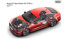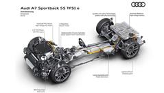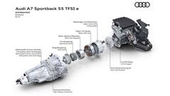 Audi released details about its sporty four-door coupe A7 55 TFSI E. the car uses the same powertrain as Q5 and A8. as a plug-in hybrid model, the A7 uses a 2.0-liter 7-speed S-Tronic DCT gearbox and it features a so-called Quattro AWD system.