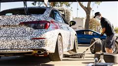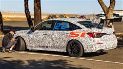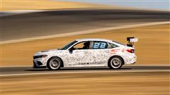 In April, Honda unveiled the 11th-generation Civic. Though our initial batch of teasers offers us a decent idea, we were unsure how the Civic's new design will adapt for the sportier Si level. Honda is preparing the Civic Si for the 25 Hours of Thunderhill this year. A camouflaged test car with a huge rear wing is also on display.