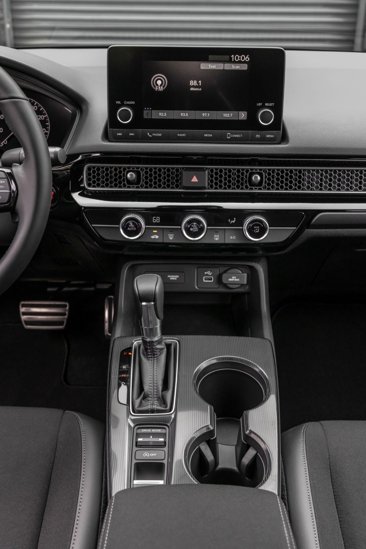 The 2022 Civic Sport begins at $24,095 and includes, among other things, 18-inch alloy wheels, black exterior highlights, an enhanced 8-speaker audio system, model-specific interior, a leather-wrapped steering wheel and shifter, and a Sport driving mode.