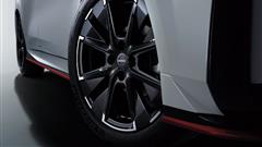 The Note Aura Nismo also has a special suspension system for improved handling. The front end has a distinct Nismo splitter completed in red. The car also sports 17-inch aluminum wheels, red mirror caps, red side skirts, and an aggressive rear fascia with a unique bumper and diffuser kit. According to Nissan, the Note Aura Nismo's distinctive external styling increases downforce, resulting in better high-speed stability.