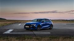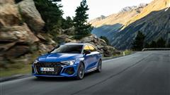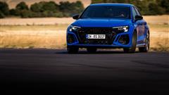 Audi doesn't adjust the suspension because it's already quite capable, but the RS3 Performance Edition comes standard with an adaptive chassis. Additionally standard are ceramic brakes, and the car rides on 19-inch wheels with Pirelli P Zero Trofeo R tires that are exclusive to the package.