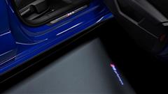 The Performance Edition features standard bucket seats with Dinamica microfiber and Nappa leather on the inside. Mercato Blue stands out against the dark interior. On the dashboard, there is a special '1 of 300' badge. A carbon fiber background has also been added to the 10.1-inch infotainment display.