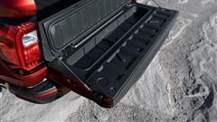 The vehicle has a revised tailgate with large GMC badging, accentuated fenders, and a more conventional greenhouse. In relation to the latter, the tailgate features a built-in storage space that is accessible by lowering the gate and depressing a few releases. The container should be airtight and 1,143 mm wide, though GMC didn't say much about it.