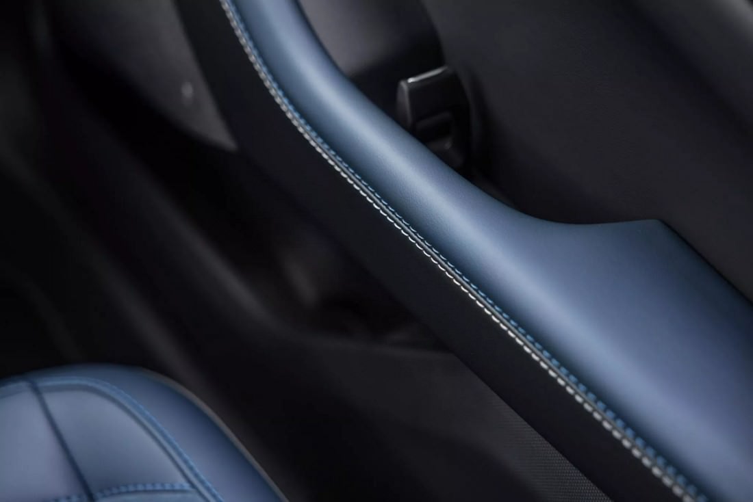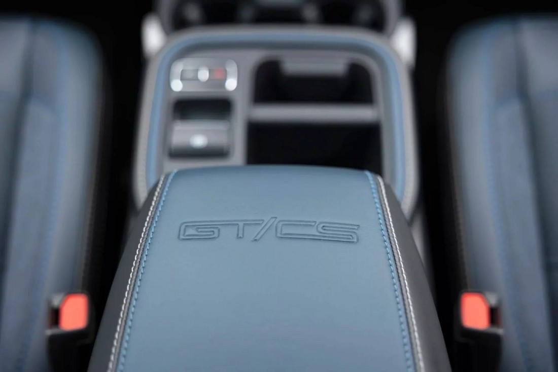 Inside, the enhancements continue with a cabin designed to balance performance and sophistication. The seats are wrapped in Navy Pier ActiveX material, a premium synthetic upholstery that blends durability with style, and are paired with Miko inserts for added comfort and texture. This deep navy tone extends to the steering wheel and center console, both of which carry the “GT/CS” emblem as a reminder of the car’s special edition status. Further elevating the interior are custom floor mats featuring blue and silver stitching that echo the accents found throughout the seats and trim, creating a cohesive design theme from front to back.