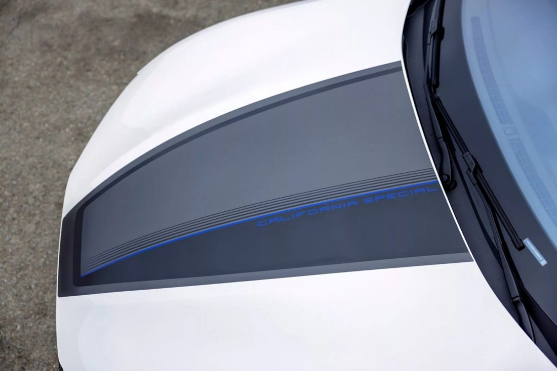 Visually, the Mach-E GT California Special features several unique touches that set it apart from the standard model. At the front, an illuminated Rave Blue pony badge immediately catches the eye, giving the vehicle a distinct glow that hints at its exclusive character. Complementing this are new 20-inch wheels that combine carbonized gray and black finishes, creating a striking two-tone appearance. The car also wears bespoke “GT/CS” badging and a new hood graphic inspired by the Californian coastline. Though the graphic may seem understated at first glance, Ford’s exterior designer, Stefan Taylor, explained that its layered gray, black, and blue lines are meant to evoke the sight of a radiant sunset fading into the Pacific Ocean—an artistic nod to the state that inspired the edition.