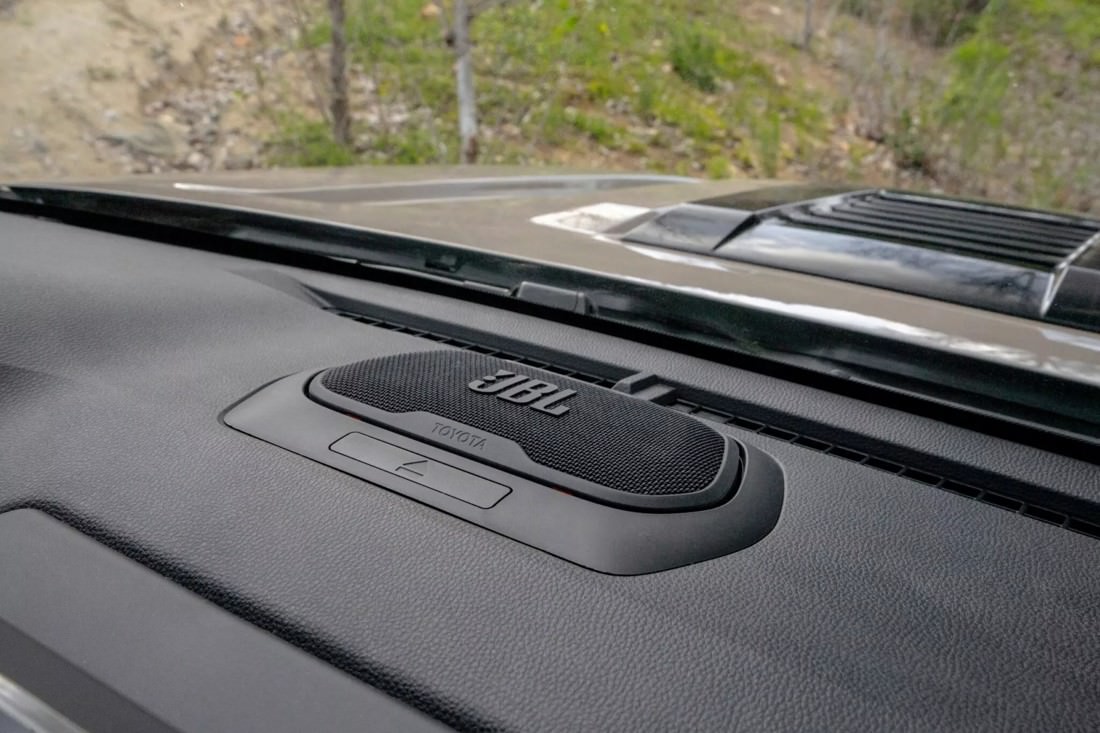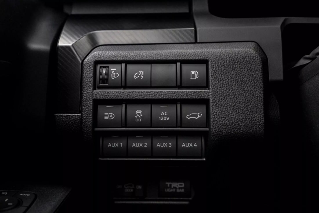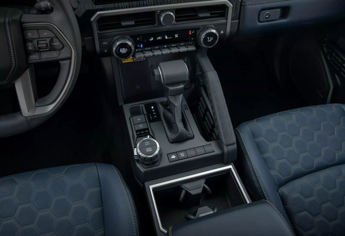 Inside, the TRD Pro delivers a more upscale experience with a heated leather-wrapped steering wheel, heated and ventilated front seats upholstered in SofTex, power seat adjustments, and dual-zone automatic climate control. Other interior conveniences include a wireless device charging pad, a digital rearview mirror with HomeLink, a 12.3-inch digital gauge cluster, and a large 14-inch infotainment touchscreen.
