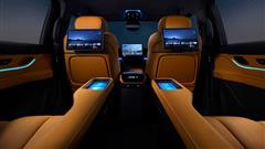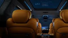 The second row presents a more lavish ambiance, promising a pleasurable journey for passengers. Equipped with screens embedded in the backrests of the front seats and smartphone-sized displays integrated into the armrests, occupants can indulge in entertainment or stay connected throughout the ride. Furthermore, these seats offer reclining capabilities and adjustable footrests, ensuring optimal comfort for extended travels. Noteworthy features such as a panoramic glass panel and ambient lighting accentuate the cabin's upscale atmosphere, enhancing the overall sensory experience for passengers.