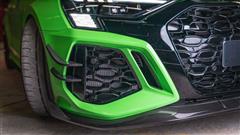 A redesigned front splitter, front canards, updated wing mirror covers, and a rear wing, all constructed of carbon fiber, are among the ABT RS3-R's cosmetic modifications. Side skirts in glossy black have also been fitted. A pair of black 20-inch ABT wheels are mounted with 245/30 Goodyear Eagle F1 SuperSport R tires on all four corners.