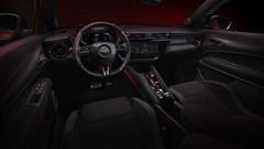 Inside, the Milano offers a digital cockpit equipped with dual 10.25-inch displays. Alfa Romeo-specific elements, such as the distinctive graphics of the infotainment system and the Cannocchiale digital instrument cluster, enhance the cabin's ambiance. Optional features include Sabelt seats upholstered in Alcantara as part of the sports package, while other trims offer Spiga vinyl and fabric upholstery paired with a leather steering wheel.