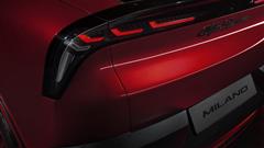 The Milano's profile is defined by its muscular rear shoulders, large wheels, and a greenhouse that seamlessly merges with the rear glass. While the rear adopts a "kamm tail" finish reminiscent of the Giulia TZ, it refrains from venturing into the realm of coupe-SUV design.