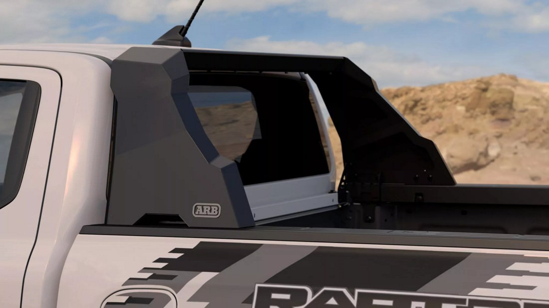 The most striking additions are roof-mounted ARB “Nacho Quatro” LED lamps, which are arranged in two pairs of two and mounted on a custom roof bar that doubles as a spoiler. These lights provide improved nighttime visibility, ideal for off-road adventures in remote areas or desert terrain. Complementing the roof lights is a matching ARB Sports Bar on the rear bed, further reinforcing the vehicle’s aggressive stance. However, these upgrades come with a few compromises. For instance, the factory power roller shutter is incompatible with the new sports bar. Owners can opt to replace it with the Real Truck Power Roller Shutter instead. Additionally, the powerful roof-mounted LEDs can interfere with DAB+ digital radio signals, but Ford’s engineers judged that the benefits of enhanced nighttime off-roading outweigh the loss of perfect radio reception.