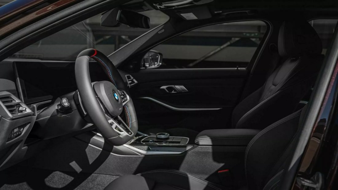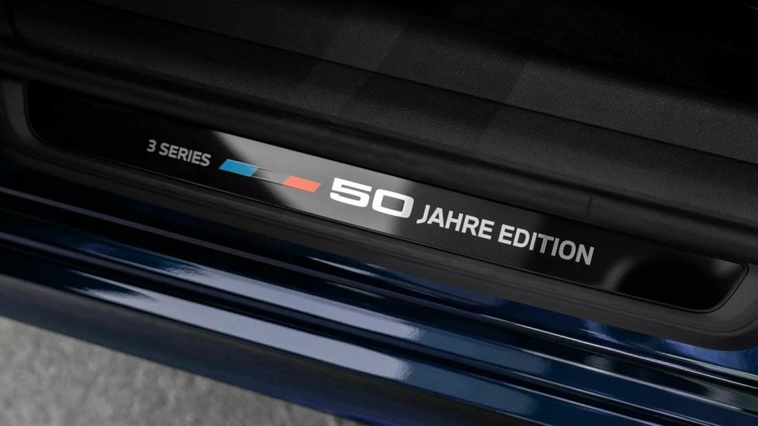 Inside, the cabin reflects BMW’s signature blend of luxury and craftsmanship. The interior is upholstered in premium Merino leather from the BMW Individual range, available in elegant black or clean white. Subtle commemorative touches include a brushed metal plaque engraved with “3-Series 50 Jahre Edition” located on the cupholder cover, as well as matching door-sill plates that greet occupants as they step inside.