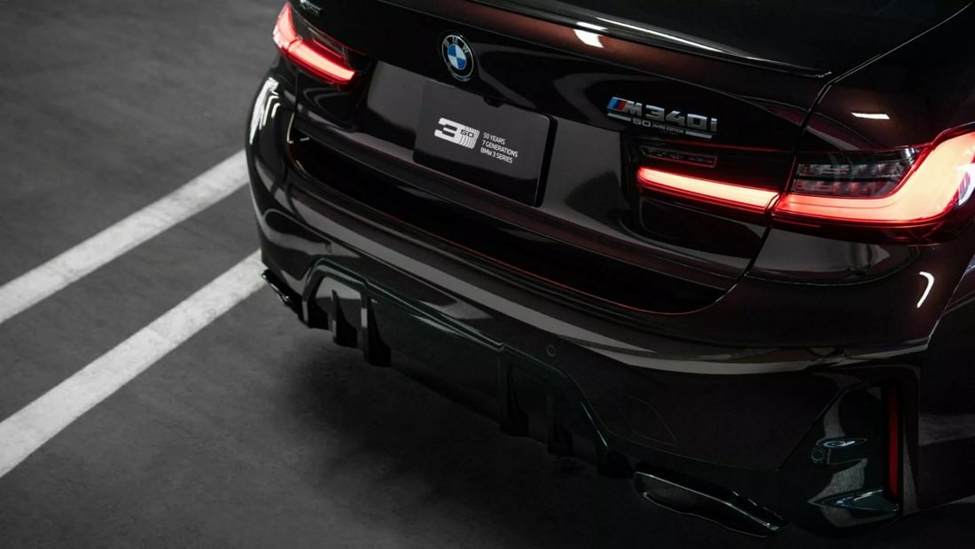 While the exterior colors provide a nostalgic nod to the past, BMW has chosen to keep the rest of the design pure and performance-focused. The 50 Jahre Edition comes standard with the aggressive M Sport body kit and a distinctive set of 20-inch forged alloy wheels featuring a bold Y-spoke design. Special “50 Jahre Edition” badging decorates the tailgate, distinguishing it from regular M340i models, while the M Performance exhaust system enhances the sound profile of the turbocharged straight-six engine, delivering a deeper and more engaging tone.