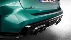 For the M3 Touring, the tuner has created a performance exhaust system that includes brand-new quad exhausts with carbon fiber tailpipes. The suspension has also been improved for better handling, decreasing the ride height at the front with the tuner's basic spring kit by between 15 and 20 mm, but not at the back. The RS coilover suspension, an alternative, has adjustable low-speed and high-speed compression, rebound, and lower settings.