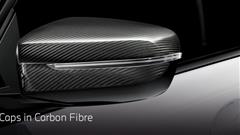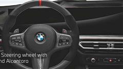 The M Performance steering wheel, several carbon fiber accents, and a unique keyfob are among available cabin options. There is piano black trim, as well as upholstery in black and blue with Alcantara inserts.