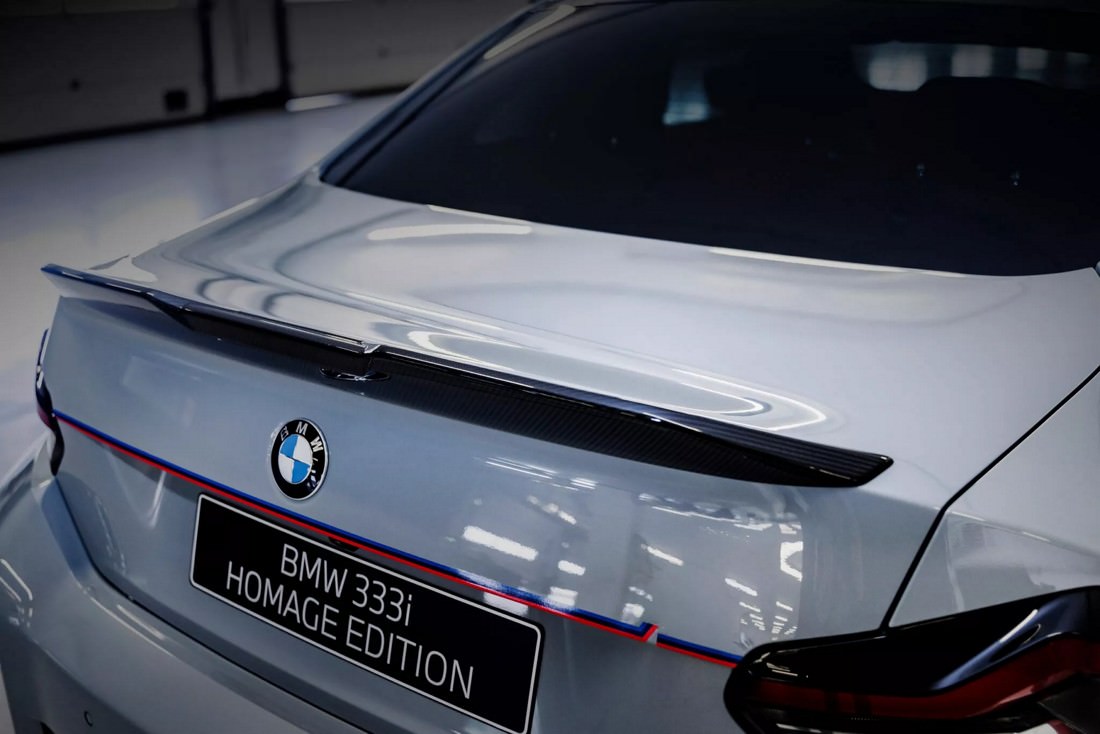 The 333i Homage is an even more potent and focused version, based on the BMW M2. It features heritage-inspired graphics, 20-inch Alpina-style wheels, and aerodynamic carbon fiber components such as a front splitter and rear spoiler. The model also receives a quad-exit M Performance exhaust system and can be ordered in five striking colors: Alpine White, Sapphire Black, Brooklyn Grey, Zandvoort Blue, and Fire Red. Inside, it mirrors the 325iS Homage’s interior design but adds lightweight carbon fiber bucket seats and a unique commemorative plaque. Power comes from a 3.0-liter TwinPower Turbo engine delivering 473 horsepower and 600 Nm of torque, enabling a 0–100 km/h time of just 4.0 seconds with rear-wheel drive.