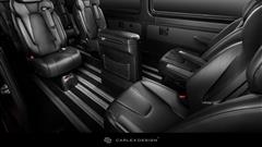 Carlex has trimmed much of the inside in high-quality Nappa leather, with Carlex branding in the middle of the seats. An Alcantara headliner, ambient lighting, and a special steering wheel with a leather cover contribute to the van's opulent atmosphere.