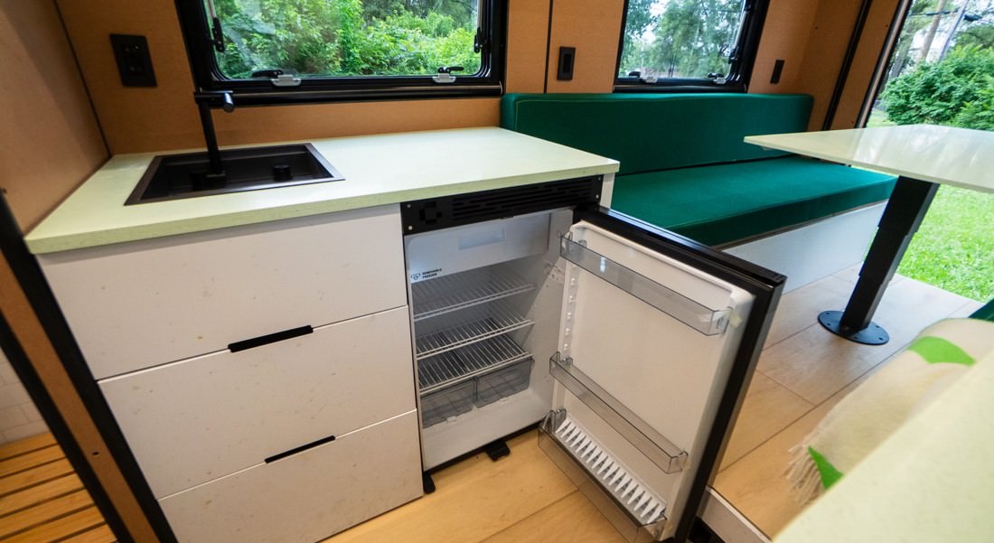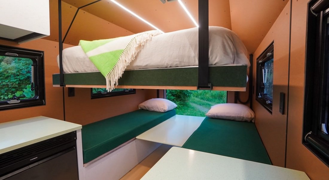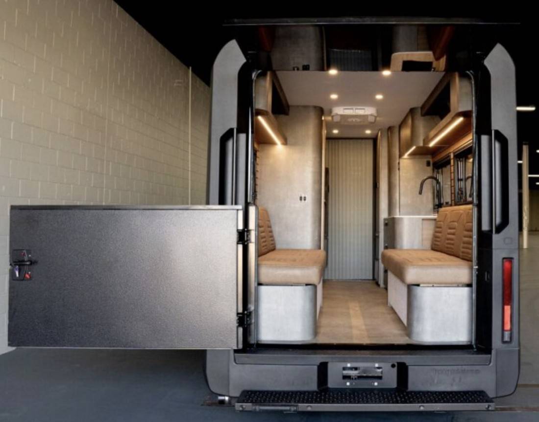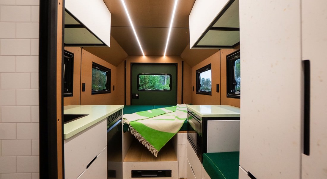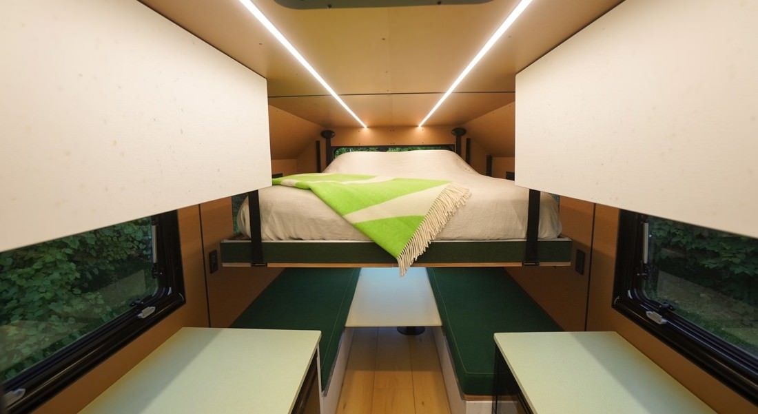 Another clever element is the rear hatch and tailgate, which open wide to connect the living space with the outdoors. This setup not only enhances ventilation and views but also makes it easy to load recreational gear such as e-bikes or kayaks.