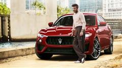 David Beckham is the British footballer. He acts on the advertisement with a metallic red Levante.