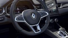 All vehicles have a gray exterior shade inside, but Renault says they will be available in a variety of hues. Warm Titanium stitching can be found on the seats, doors, and steering wheel, which matches the dashboard trim pieces. The letter E is emblazoned on the steering wheel, while "E-Tech Engineered" writing is emblazoned on the door sills.