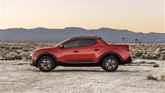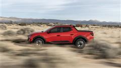 Technological enhancements include standard wireless Apple CarPlay and Android Auto, over-the-air update support, Digital Key 2 with a fingerprint scanner, and Hyundai's in-car payment system. Under the hood, the Santa Cruz retains its engine options: a 2.5-liter four-cylinder engine generating 191 hp and 245 Nm of torque, and a 2.5-liter turbocharged variant producing 281 hp and 422 Nm of torque. Both engines are paired with an eight-speed dual-clutch transmission, refined for improved responsiveness and reduced frictional losses.