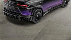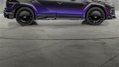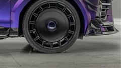Forged carbon fiber continues to dominate the exterior, adorning the hood, front fenders, roof, wing mirrors, side skirts, rear wings, rear diffuser, and rear fenders, imbuing the SUV with a distinctive visual identity. The ensemble is further accentuated by a set of sleek black wheels and a striking black-to-purple gradient wrap enveloping the upper half of the vehicle.