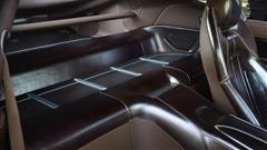 The BR20's interior looks to have had minimal alterations at first, save from some nice black leather detailing. The back seats have been replaced with a stylish baggage section that is semi-open to the trunk space and is trimmed in leather, wood, and carbon fiber. Dark brown Heritage Testa di Moro leather covers the seats, which are accented with silver cross-stitching and a distinctive front design.