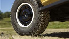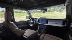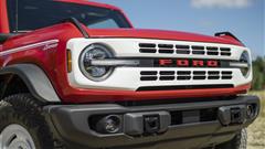 The High-Performance Off-Road Stability Suspension (H.O.S.S.) 2.0 system, Bilstein position-sensitive dampers, raised ride height, 35-inch Goodyear mud-terrain tires, and Dana front and rear electronic locking axles are all included in the optional Sasquatch Package for the Bronco Heritage.