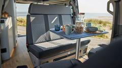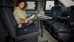 Inside, the Ford Transit Custom Nugget campers have been enhanced with several special features to improve comfort and functionality. The seats are upholstered in water-resistant and durable fabric, ideal for outdoor adventures where durability is key. A large touchscreen display serves as the control center for the camper, allowing users to manage all essential vehicle functions such as lighting, heating, and water levels with ease. This setup not only improves the user experience but also adds a layer of convenience for those on the go.