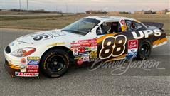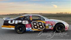 The last sentence of this NASCAR racer's Barrett-Jackson Auction ad mentions that it may not be emission compliant in all 50 states. This professionally-built, tube-frame chassis Ford Taurus is promoted as being 'road legal,' and incorporates LED headlights and taillights, indicators, windscreen wiper, and external mirrors as a copy of Dale Jarrett's UPS stock car. There's even a cup holder and a passenger seat.