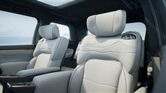 The cabin can be decorated in one of two styles: the understated "Black and White" scheme or the opulent "Royal Opera," which features crimson, gold, and white hues. Cantonese embroidery serves as the inspiration for the upholstery on the seatbacks and door panels, with semi-aniline leather serving as the material for the rest of the interior. With the third row folding and the second-row sliding, the seating configuration is adaptable, turning the seven-seat MPV into a four-seat mobile conference room.