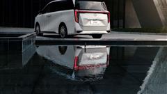 The profile features sliding doors, a big greenhouse, and small-diameter wheels that are typical of minivans. A chrome skirt, a large rear wing, and sophisticated LED taillights are added to the back end with the large tailgate.