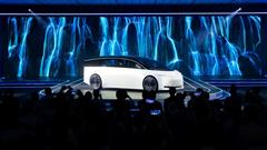 Since the concept is capable of Level 4 autonomy, the cabin is designed to resemble a futuristic living room. The dashboard features a retractable steering yoke, wood inlays, and three screens combined into a single panel.