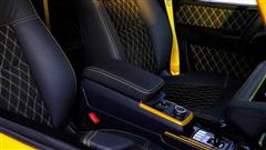 While there are no comprehensive interior photographs, G&D Design claims that the same color scheme is used throughout the cabin. However, black appears to be the dominant hue, with leather covering virtually every surface of the cabin. Seat belts and ornamental stitching for the seats have yellow highlights.