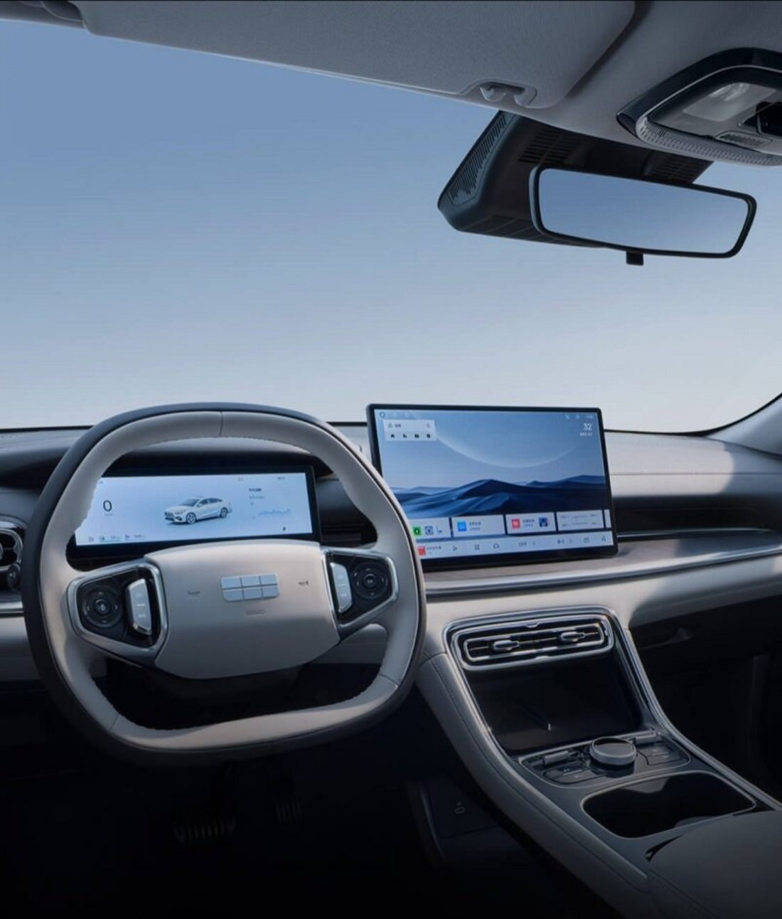 Stepping inside, the cabin reflects Geely’s focus on comfort and technology. The interior design is highlighted by a sporty two-spoke flat-bottom steering wheel, a 10.2-inch digital instrument cluster, and a large 14.6-inch central infotainment screen. Running on the Flyme Auto system, the infotainment hardware is powered by Geely’s in-house Dragon Eagle-1 chip, a 7nm processor that ensures smoother and faster performance. In terms of space, the sedan offers generous headroom of 970 mm in the front and 960 mm in the rear, ensuring comfort for passengers of varying heights. The seats are designed with 80 mm of cushioning, including 20 mm of memory foam for improved support and long-distance comfort.