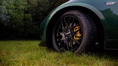 The exterior design of the MX-5 Geshi is one of its most striking features. It sports an exclusive paint color reminiscent of the classic British Racing Green used in the original NA Miata models. This nostalgic hue is complemented by white, black, and yellow stripes, which add a dynamic touch to the roadster’s appearance. In addition, the yellow brake calipers, visible behind the sleek black BBS alloy wheels, further enhance the car's sporty aesthetic. The sand-colored canvas roof and cream leather interior complete the bespoke design, giving the vehicle a luxurious yet sporty feel.