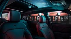 Black leather with contrasting red stitching, the N symbol on the seats, shiftknob, and steering wheel, as well as a glossy black coating for the center console, can all be found inside the cabin. A heated driver's seat, automatic air conditioning, six airbags, and the Hyundai SmartSense ADAS suite's base pack are all standard features.