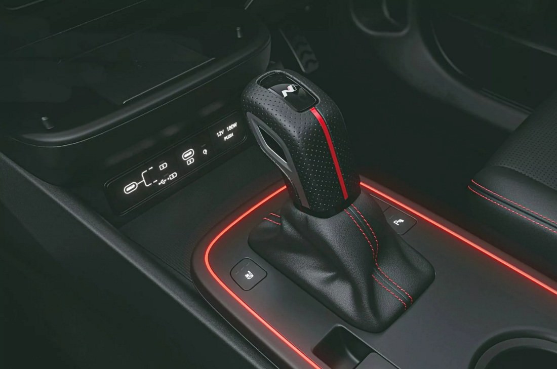 Inside, the Venue N Line’s cabin has undergone a complete transformation. The interior adopts a dark black theme contrasted with red stitching, giving it a performance-oriented yet premium ambiance. The flat-bottom steering wheel, inspired by the Ioniq 5 N, includes paddle shifters and dedicated dials for drive mode and traction control. Other sporty touches include N-branded black leather seats, a gear knob with the N logo, metal sport pedals, and Sunrise Red ambient lighting.