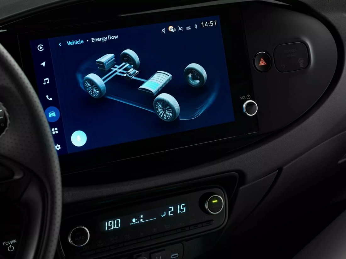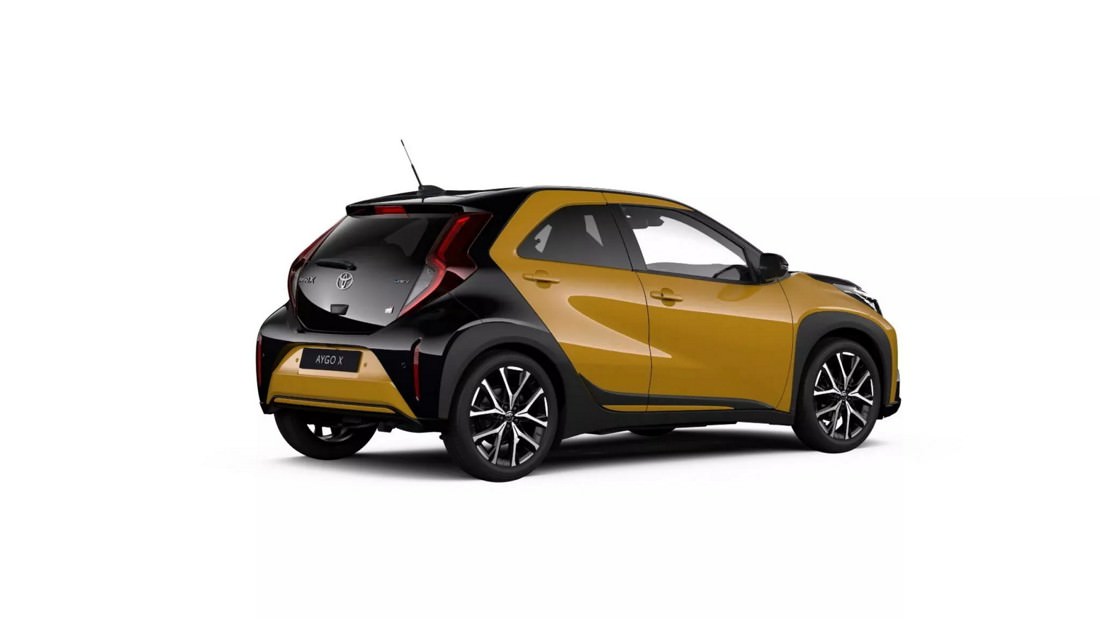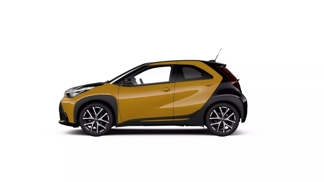 At the top of the line, the GR Sport version, priced from €26,590, is the most expensive Aygo yet. Visually, it distinguishes itself with a unique honeycomb grille, additional bumper intakes, GR badges, 18-inch alloy wheels, and an exclusive Bitone Mustard finish with black accents on the hood, roof, and tail. The GR Sport maintains the same hybrid engine as the standard model but benefits from revised suspension and steering for improved handling. It also includes enhanced features such as full LED headlights, a larger 10.5-inch infotainment screen with cloud-based navigation, heated seats, parking sensors, and dual-zone climate control.