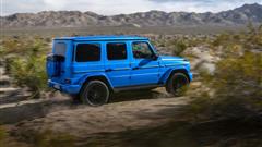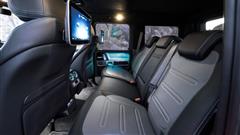 Equipped with a unique drivetrain configuration, each motor is paired with its own two-speed gearbox, complemented by a shiftable low-ratio transmission. Unlike conventional differential locks, the G580's individual motor control ensures optimal traction, enabling it to conquer a 35-degree slope and wade through 850 mm of water, surpassing the ICE-powered G-class.