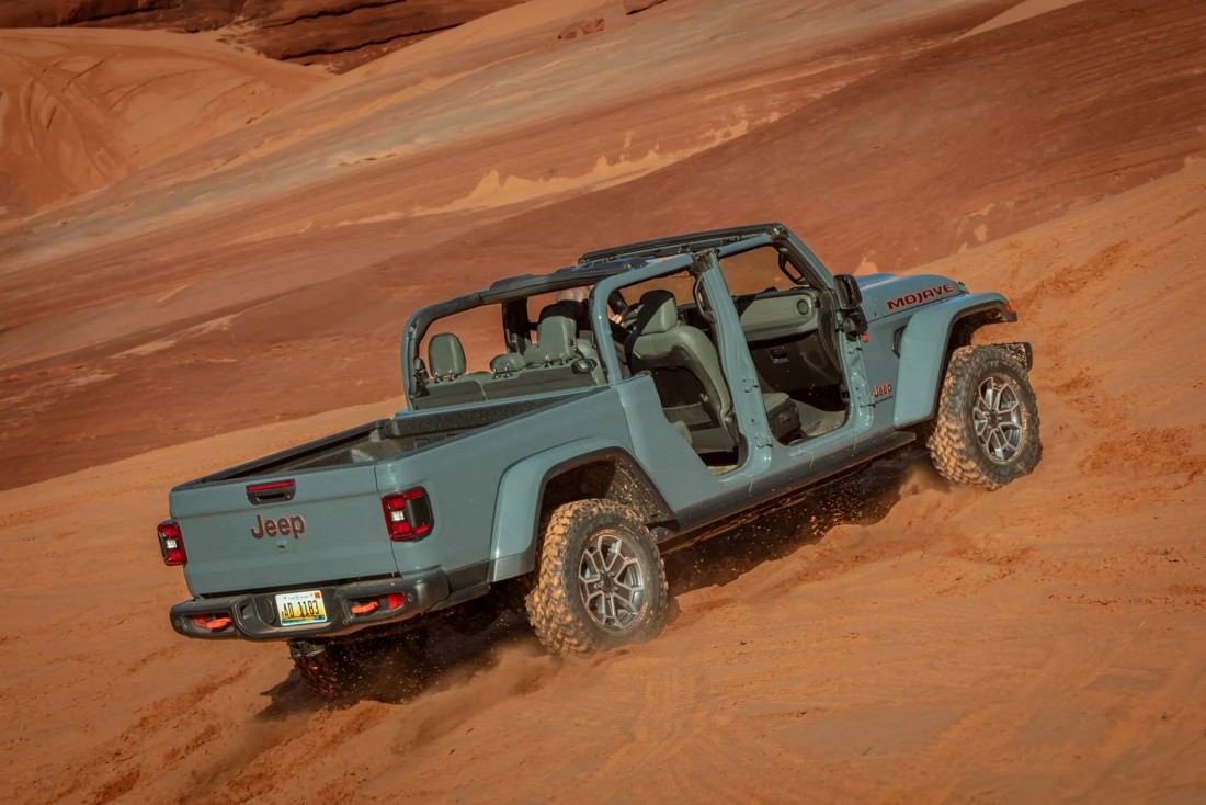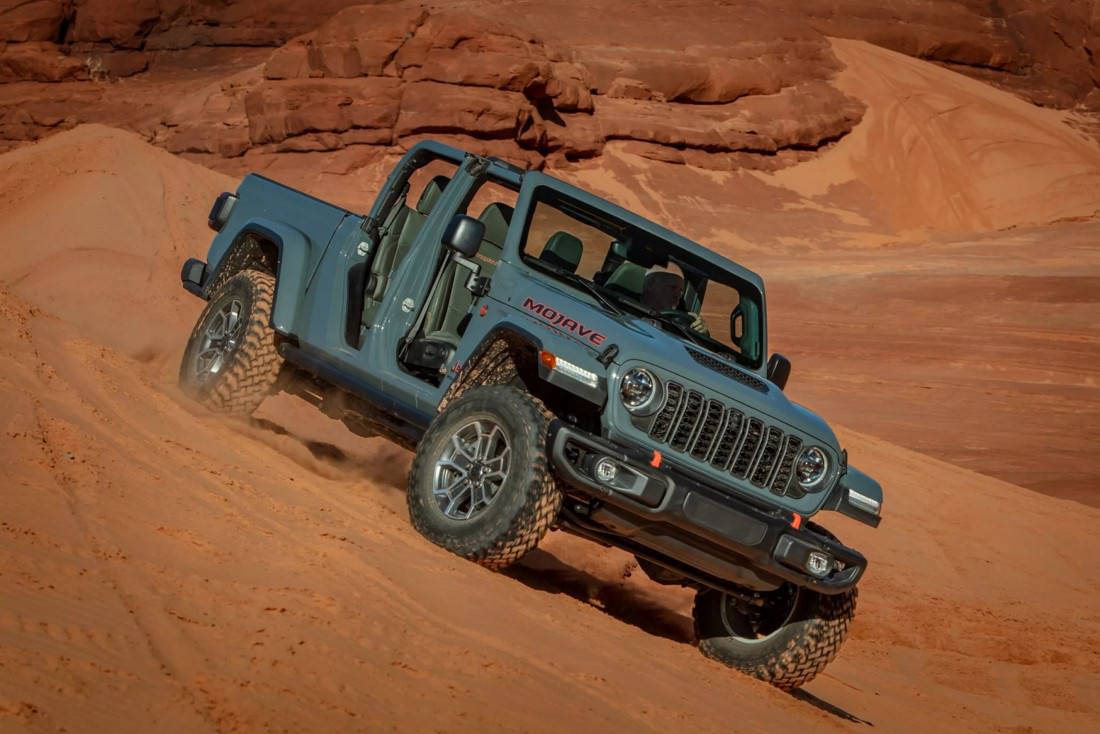 The most eye-catching addition to the lineup is the Gladiator Willys ’41, a special edition that pays homage to the Kaiser Jeep M715 military truck that debuted in 1967. Jeep refers to it as a “buzz model,” and its styling makes the military inspiration immediately clear. The Willys ’41 comes equipped with rugged steel bumpers, distinctive 17-inch wheels finished in Olive Drab, and a hood borrowed from the off-road-focused Mojave trim. Unique graphics, black exterior accents, a protective grille guard, and chunky mud-terrain tires further differentiate it from the rest of the range. Inside the cabin, buyers will find tan upholstery accented with Mantis Green bolsters, continuing the retro military theme. This special-edition Gladiator starts at $47,840 before the $1,995 destination charge. Jeep is already accepting orders, and CEO Bob Broderdorf called the model both “timeless and trail-ready,” emphasizing its heritage-driven appeal.