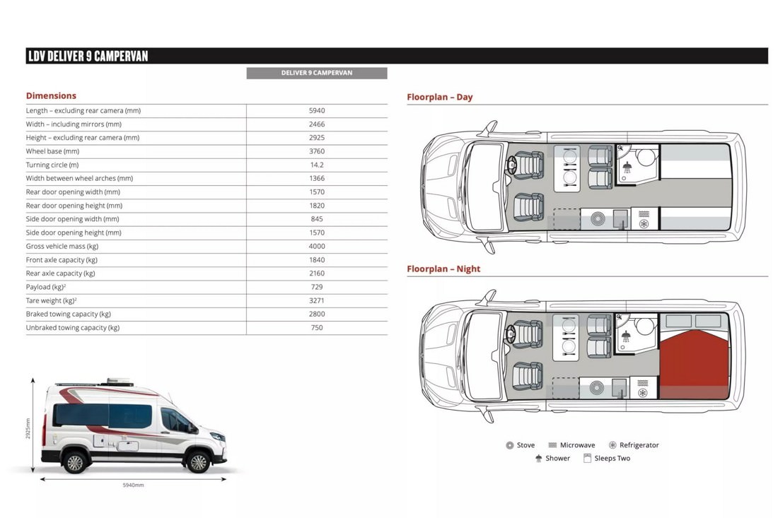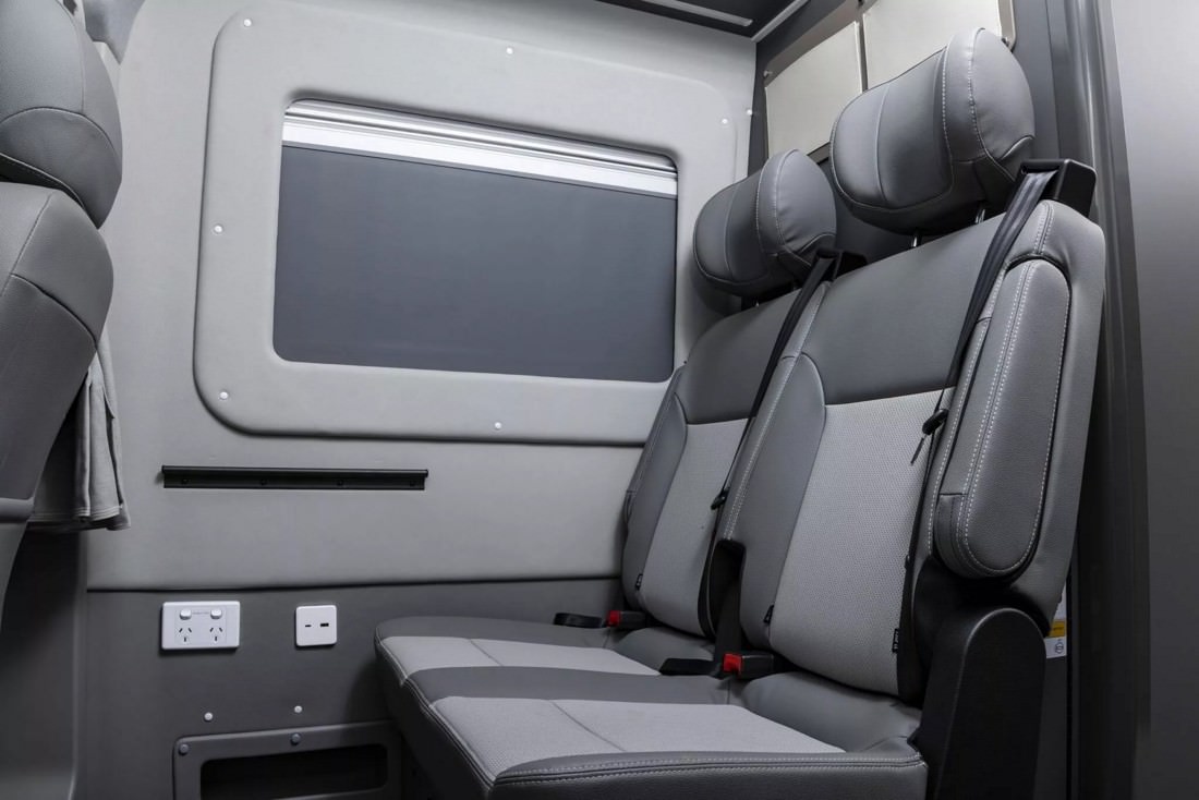 Mechanically, the Deliver 9 campervan is equipped with a 2.0-liter four-cylinder turbodiesel engine producing 145 horsepower and 375 Nm of torque. A six-speed automatic transmission sends power to the rear wheels. With an 80-liter fuel tank, the van is designed for long journeys and extended stays away from major towns. It also boasts a towing capacity of 2,800 kg, making it suitable for pulling small boats, trailers, or motorcycle carriers.