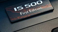 The First Edition vehicle is distinguished from the regular car by a variety of distinctive features. The IS 500 F Sport Performance includes a distinctive plaque identifying it as an "IS 500 First Edition," 19-inch forged aluminum BBS wheels in matte black finish, black wing mirrors, a hardwood ash design across some inside surfaces, leather steering wheel, and Ultrasuede materials.