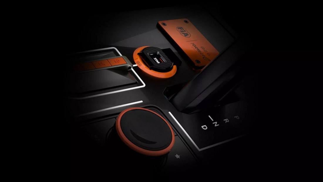 Branding cues reinforce the Formula E theme, including Formula E badges on the front fenders and a custom logo on the windshield. Inside, the cabin combines black upholstery with Firestorm Orange accents, FIA-branded seat belts, and a commemorative plaque, while the dashboard features the Formula E logo and a bespoke startup animation. Equipment levels remain generous, with a digital instrument cluster, dual wireless chargers, a Harman Kardon audio system, and a full ADAS suite for driver assistance.