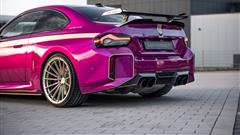Manhart has wasted no time in introducing an upgrade package for the G87 M2, with the February unveiling of the MH2 560, although its presence seems somewhat subdued compared to the GTR II. While the MH2 560 sports a brooding black finish that almost conceals its carbon fiber enhancements, the GTR II proudly flaunts its modifications with a striking magenta paint job adorned with champagne-colored Manhart decals.