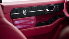 Carbon fiber accents are also prominent throughout the interior, adorning the center console, overhead panel, steering wheel, sports pedals, door sills, and door cards. To further enhance the sporty feel, the start/stop switch has been relocated to the roof liner, reminiscent of the McLaren Senna.