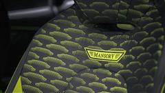 The seats, center console, dashboard, floor mats, and steering wheel are all adorned with Mansory's inky-black exterior paint and delicate "Limegreen" accents.