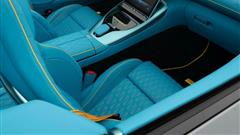 Mansory's transformative touch extends to the sides of the SL, featuring unique skirts and distinctive aftermarket wheels, setting this premium car apart from its peers. The exterior, however, pales in comparison to the vibrant interior. Adorned in bright blue leather with yellow contrast piping and unique stitching, the cabin exudes an unmatched vibrancy. Even the steering wheel receives the blue leather treatment, adding a touch of luxury and sportiness to the overall aesthetic.