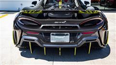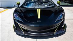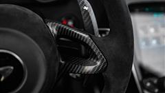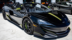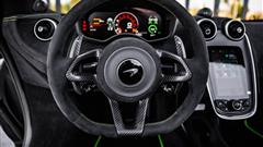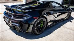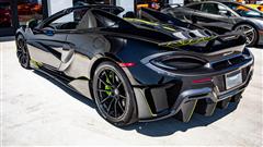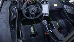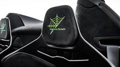 On the exterior McLaren 600LT Spider Segestria Borealis has a very beautiful black bodywork with purple shades. Also, green stripes make a nice contrast with black. McLaren used green linings on the rear spoiler, mirror caps, and side skirts.