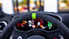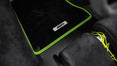 The green accent continuous through the cabin. Other highlights inside are carbon fiber seats and a new racing-inspired steering wheel.